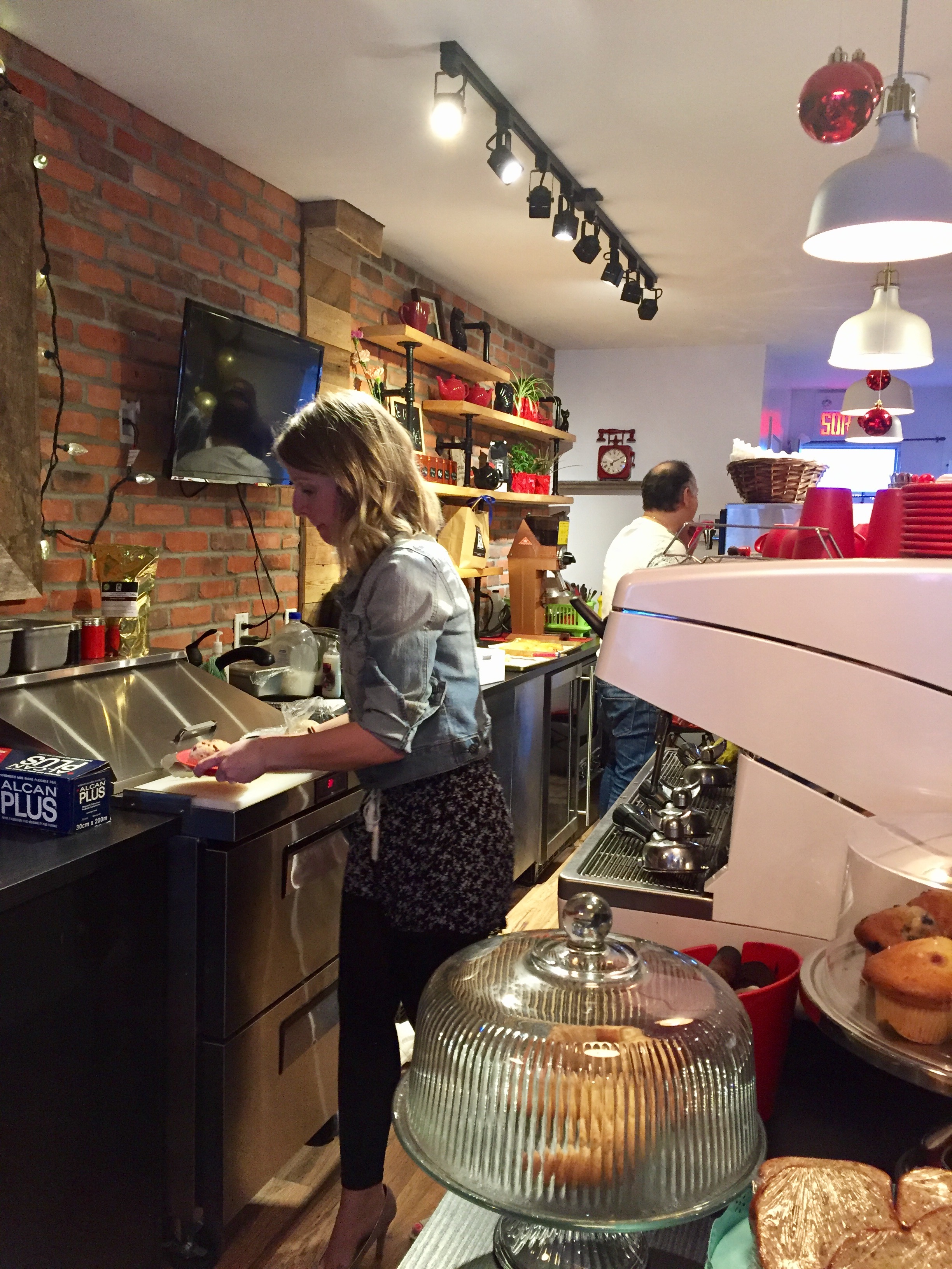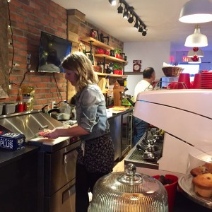Emilie derrière comptoir