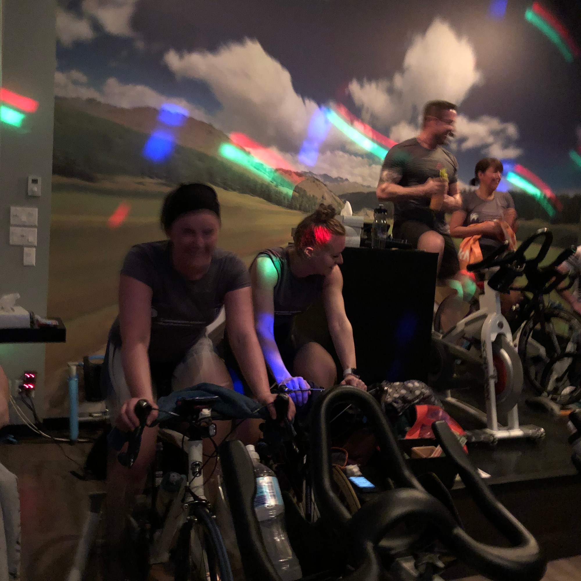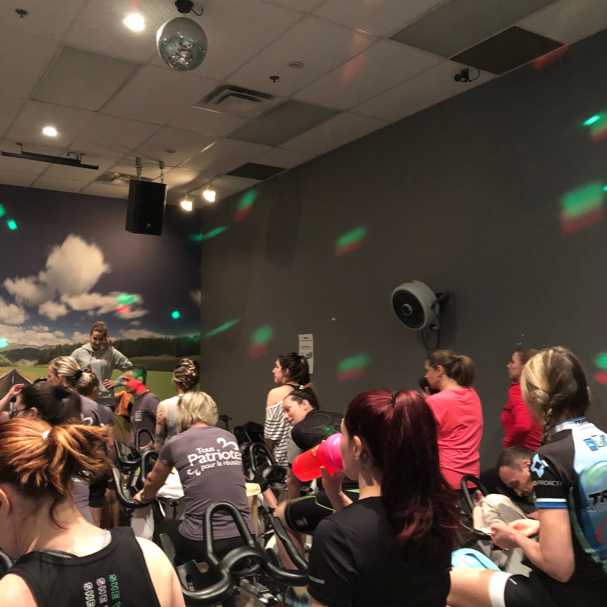 Pendant une heure, Danny Saint-Laurent s’est amusé à nous faire monter des côtes imaginaires, à faire grimper sérieusement nos fréquences cardiaques et à faire faire une ascension particulièrement incroyable à notre désir de nous rendre jusqu’au bout… de la salle de spinning! L’ambiance était à la fête, malgré les muscles qui devenaient clairement de plus en plus endoloris. Tous les participants se sont donnés énormément sur leur vélo. Probablement parce que ceux-ci étaient bien ajustés à la morphologie de tous et de chacun. En effet, celui qui allait nous faire suer, à notre plus grand bonheur, ainsi qu’un des membres de l’équipe de cyclistes, Mathieu Martel, se sont fait un point d’honneur de se frayer un chemin entre les nombreux vélo stationnaires pour les ajuster, même si ceux-ci semblaient absolument résolus à poursuivre leur route en peloton, bien serré!